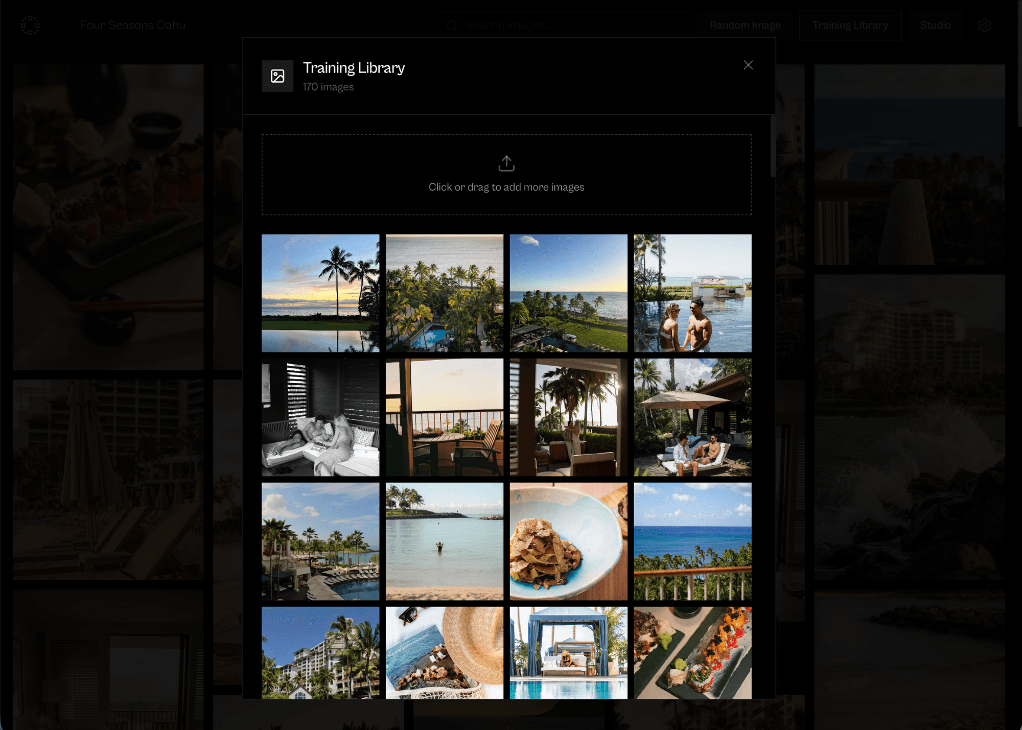 Unlimited editorial hotel imagery, generated from your existing assets.